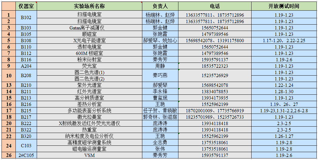 为满足学校师生寒假科研工作需求,我中心经研究决定,寒假期间部分大型设备将对全校师生开放测试服务。开放仪器及开放时间具体如下: